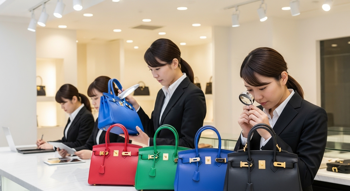 • 「いま人気の色か」「今後も支持されそうな色か」という視点で色別に評価することで、同じバーキンでも査定額が変わります。