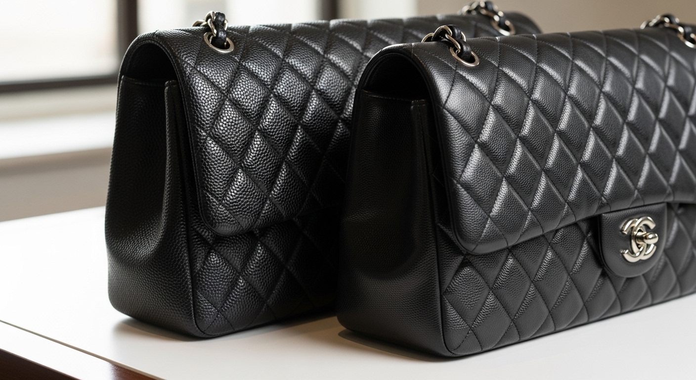 結論から言うと、キャビアスキンとラムスキンでは「価格のつき方」に傾向はありますが、一律にどちらが高いとは言えません。キャビアスキンは、硬めの型押しレザーで傷や型崩れに強く、日常使いしても見た目が保たれやすいため、中古市場でも安定した人気があります。一方ラムスキンは、非常に柔らかくしっとりした手触りが特徴で、高級感とヴィンテージ感を重視する方から根強い支持があります。